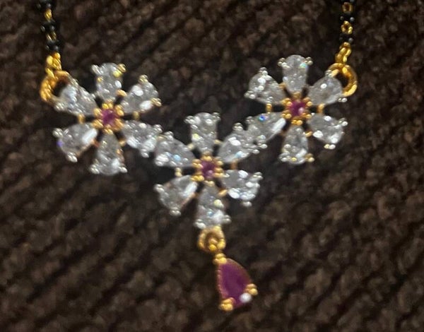 This beautiful mangalsutra set is perfect for anything you might want to wear it for - cut diamonds inlaid in gold.