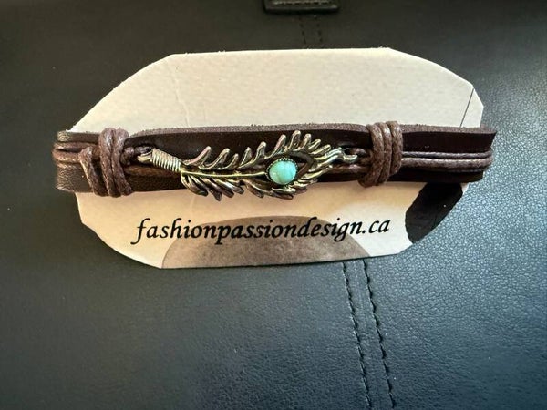 Beaded feather leather bracelet with braids